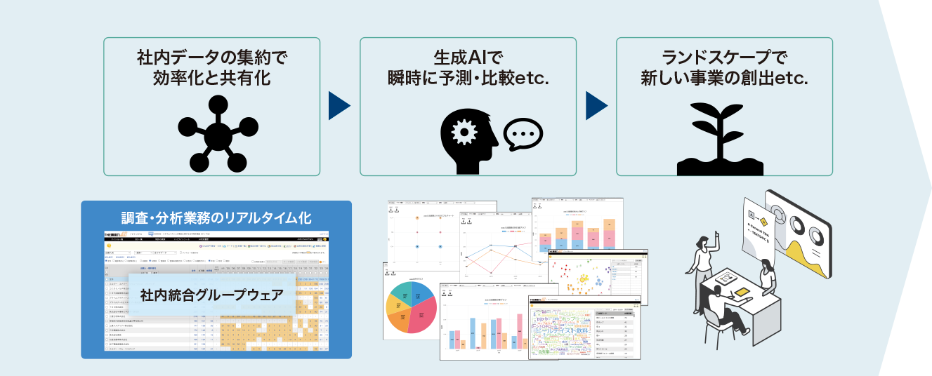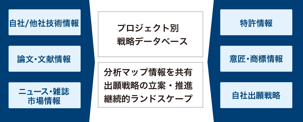 ※R&Dランドスケープは、研究開発(R&D)活動と知的財産(IP)情報を統合して、企業の技術戦略や競争戦略を効果的に支援するための手法やツールのことを指します。